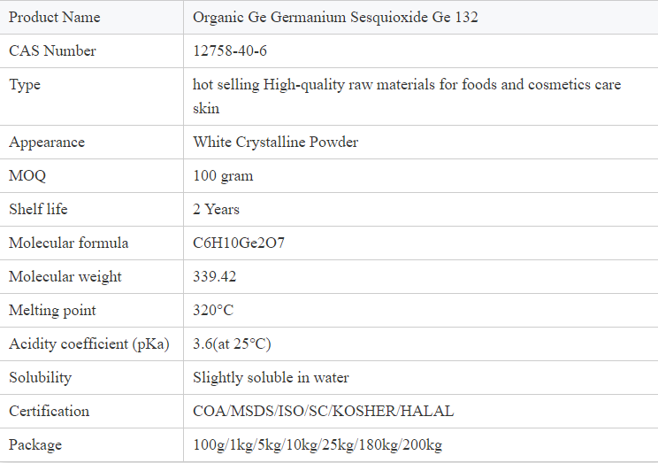 Chinese ten years Manufacturer 99.999% Organic Ge Germanium Sesquioxide Ge 132 Powder CAS 12758-40-6 High-quality raw materials for healthy care foods and cosmetics skin care powder hot Sale Provide samples, wholesale and customization in bulk